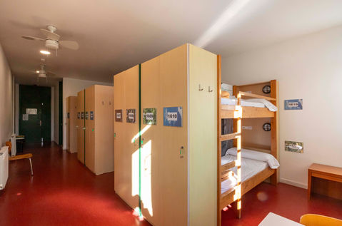 The rooms are separated by modules grouped into 4 beds and have a private locker, light point and own socket. It has heating and ceiling fans, as well as air conditioning and large windows with natural light. and large windows with natural light.